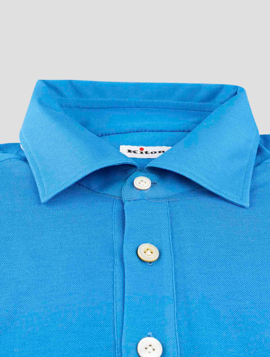 Kiton Men's Premium Cotton Polo Shirt Blue Italian Handmade