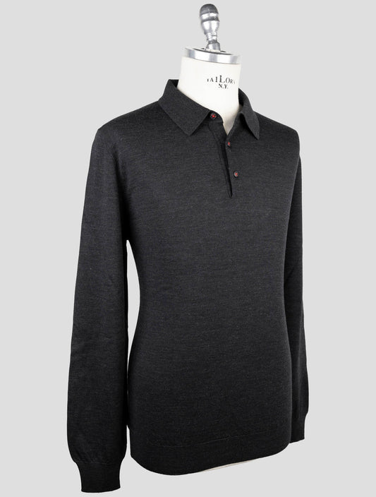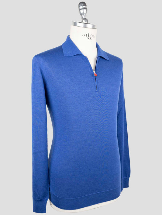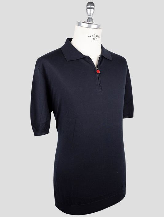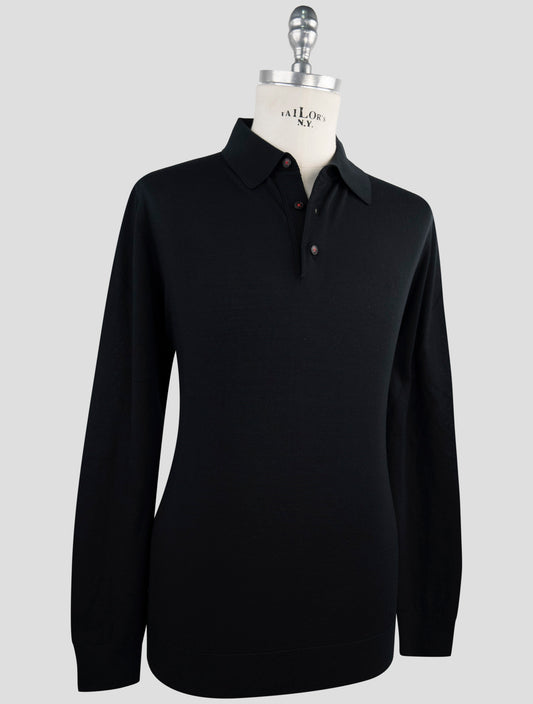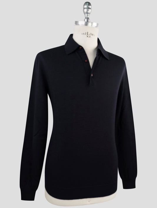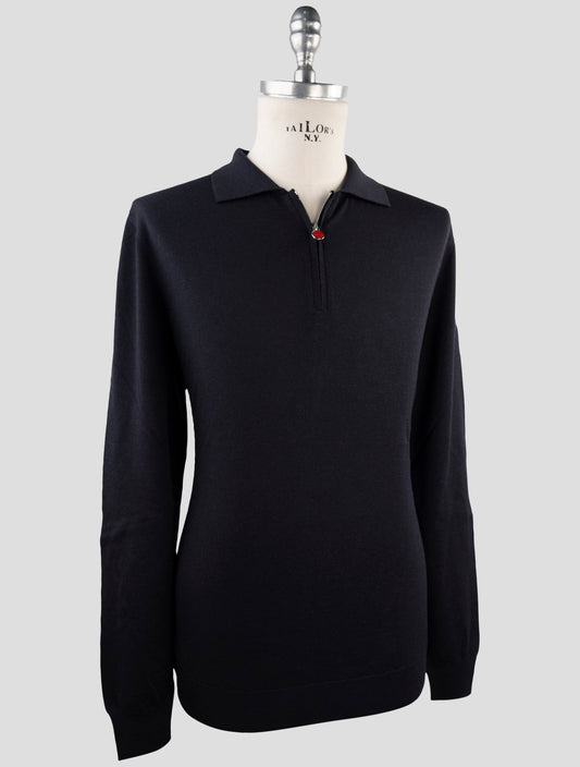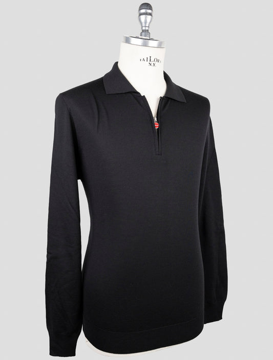 Polo en Laine Noire Kiton avec Diamante Bleu