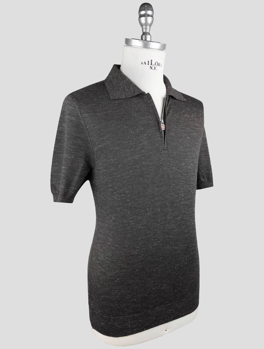 Polo en Soie Cachemire Lin Gris Foncé Kiton