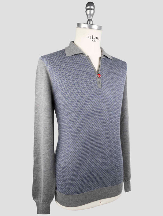 Polo en Cachemire et Soie Bleu-Gris Kiton