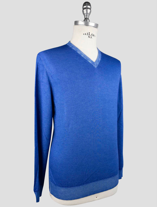 Pull V-Neck en Cachemire et Soie Bleu Kiton