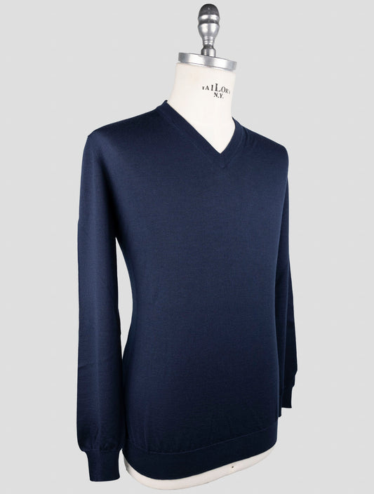 Pull V-Neck en Cachemire et Soie Bleu Foncé Kiton