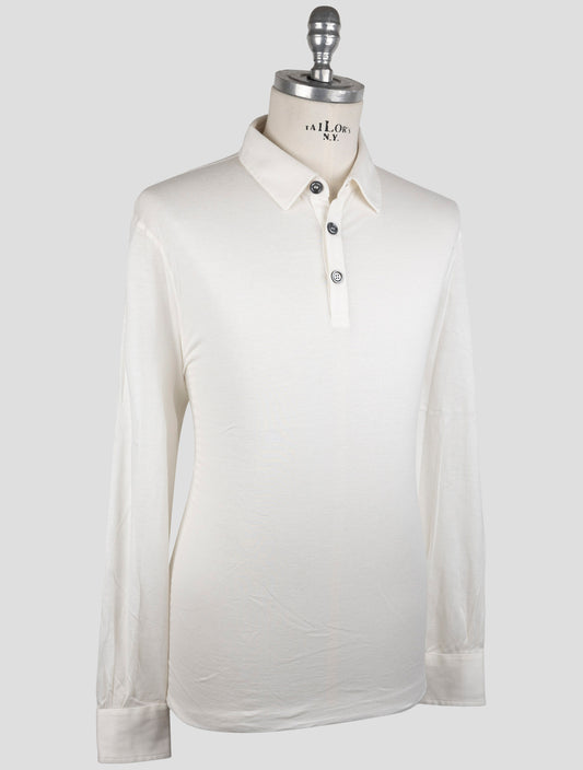Pull Polo en Cachemire Coton Blanc Kiton