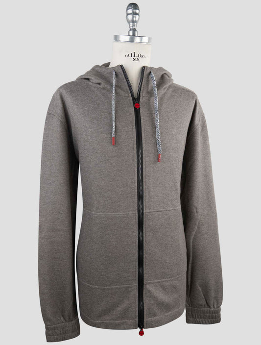Sweat à Capuche Zippé en Cachemire Gris Kiton