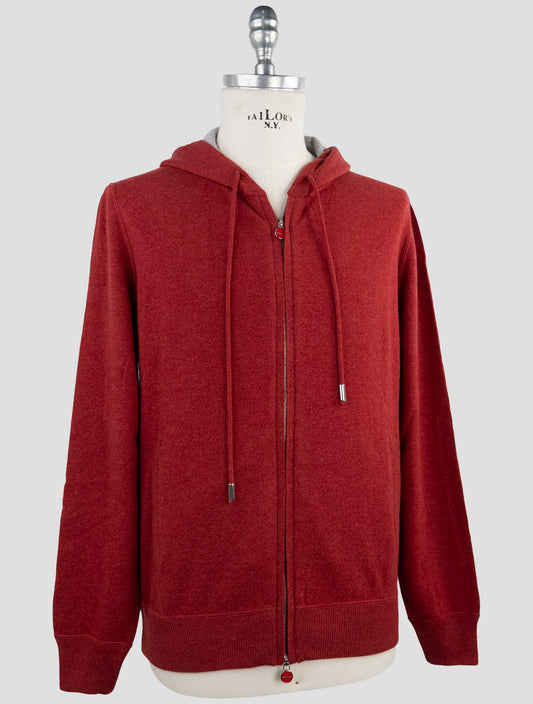 Sweat à Capuche Zip Complet en Cachemire Rouge Kiton