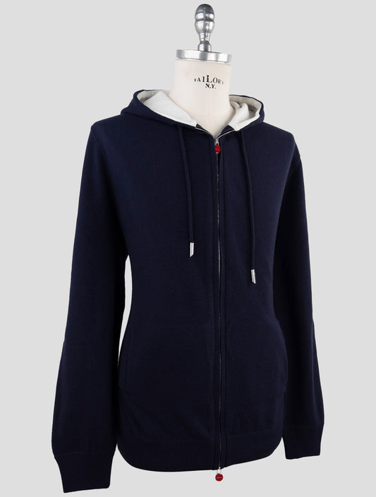 Sweat à Capuche Zippé en Laine Bleue Kiton