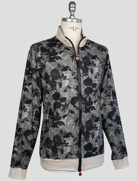 Sweat à Zip Complet en Coton Noir et Gris Kiton