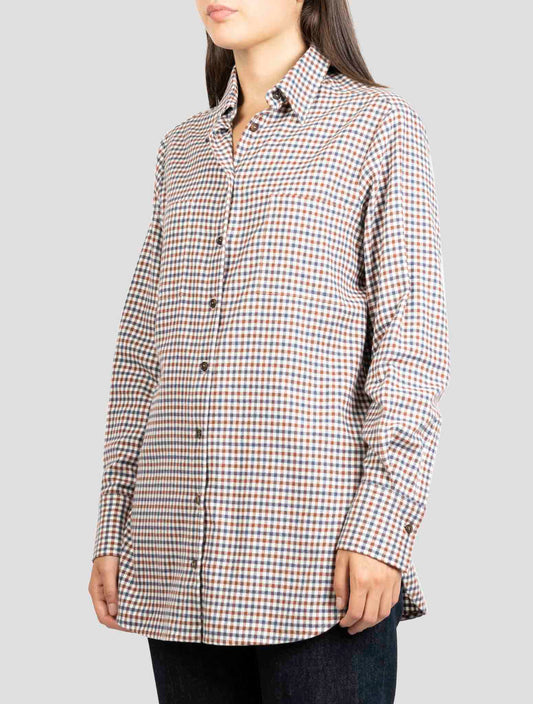 Kiton Italian Cotton Multicolor Plaid Shirt - Women's Regular