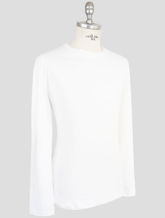 Kiton KNT White Cotton Crewneck Sweater - Made in Italy
