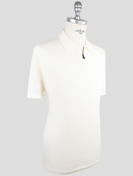 Kiton KNT White Virgin Wool Silk Half-Zip Polo - Made in Italy