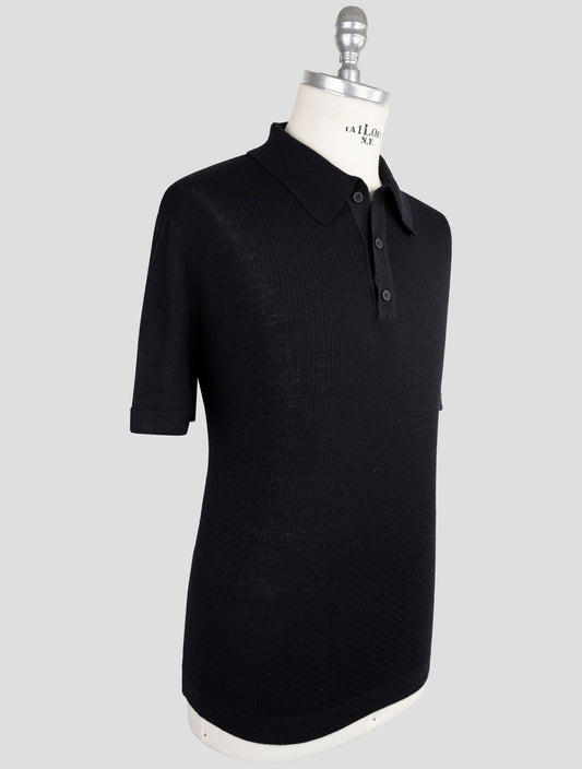 Kiton Black Cotton Cashmere Polo Sweater - Italian Luxury Knitwear