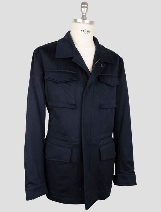 Kiton Blue Wool Double-Breasted Coat - Italian Handmade