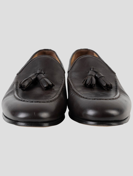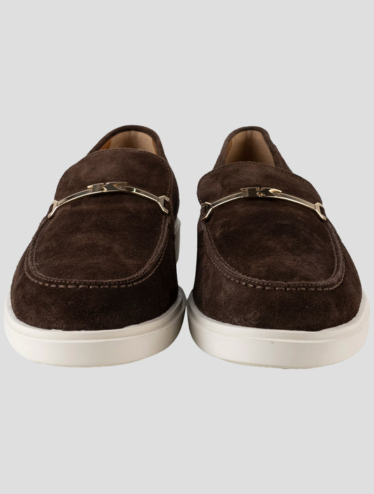 Kiton Handmade Dark Brown Suede Leather Loafers Men Italy