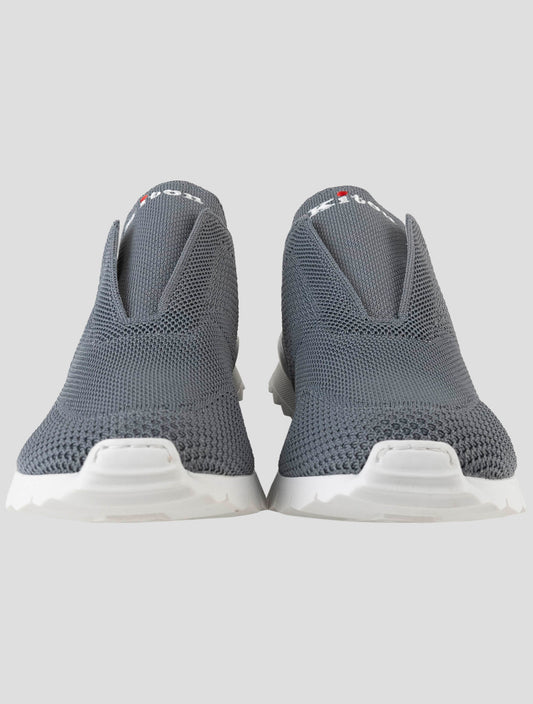 Kiton Premium Gray Cotton Elastane Italian Handmade Sneakers Men