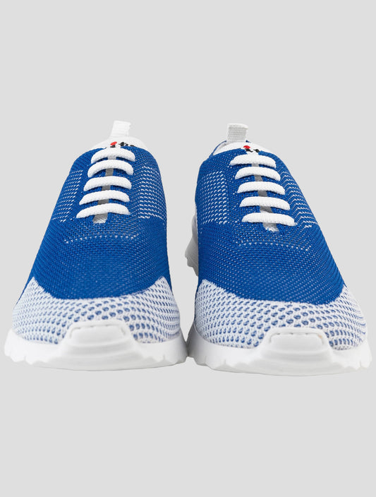 Kiton Premium Handmade Italian Cotton Sneakers White Blue Men's