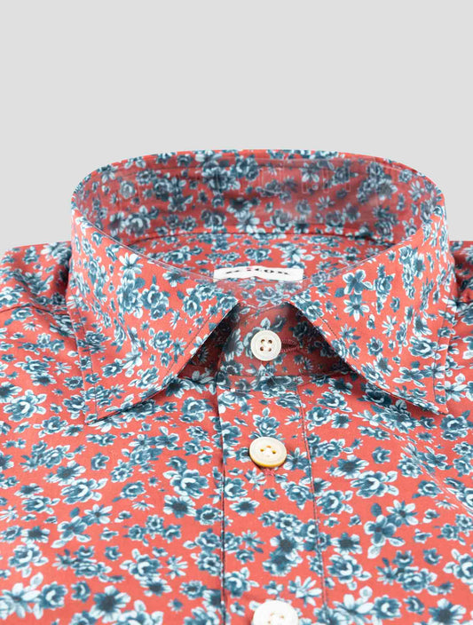 Kiton Red White Floral Cotton Shirt - Handmade Italian Dress Shirt