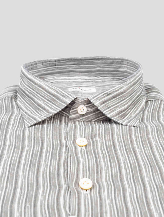 Kiton Gray Cotton Linen Shirt - Handmade Italian Summer Shirt
