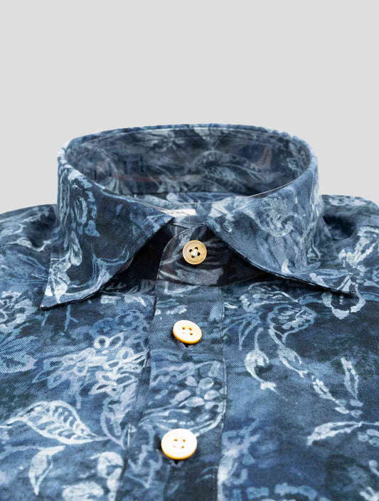 Kiton Blue Floral Cotton Shirt - Handmade Italian Dress Shirt