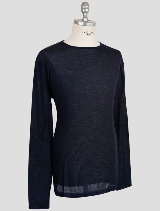 Kiton KNT Blue Cashmere Silk Crewneck Sweater - Handmade Italy