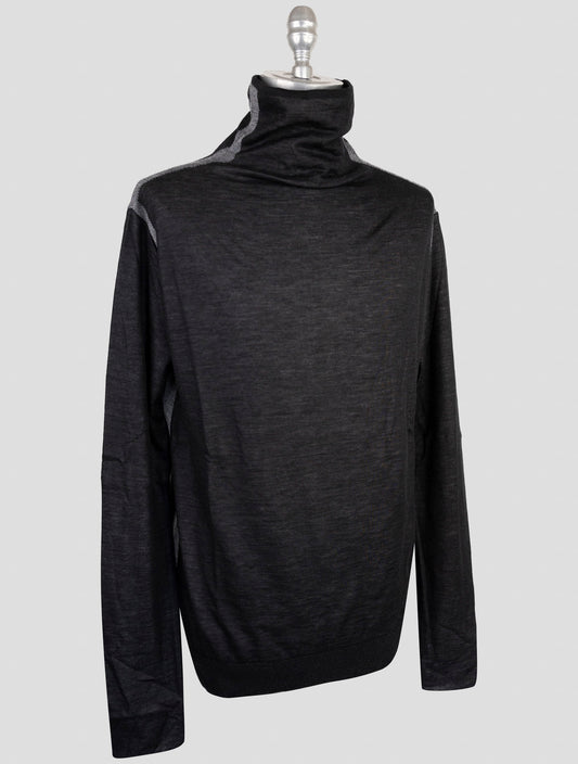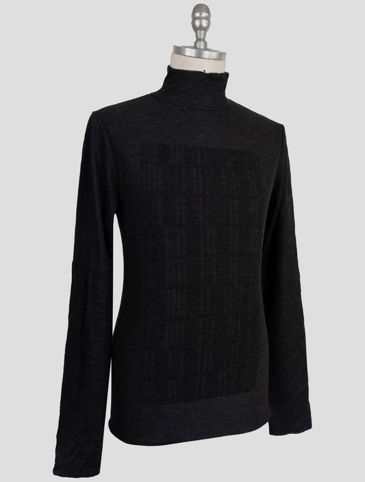 Kiton KNT Wool Cashmere Half Neck Sweater Dark Gray Handmade