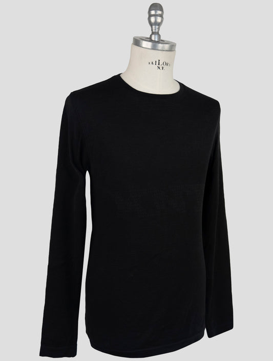 Kiton KNT Black Cotton Crewneck Sweater - Handmade Italian Knitwear
