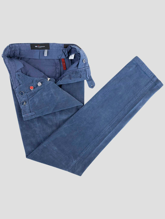 Kiton Blue Cotton Velvet Dress Pants - Handmade Italian Trousers