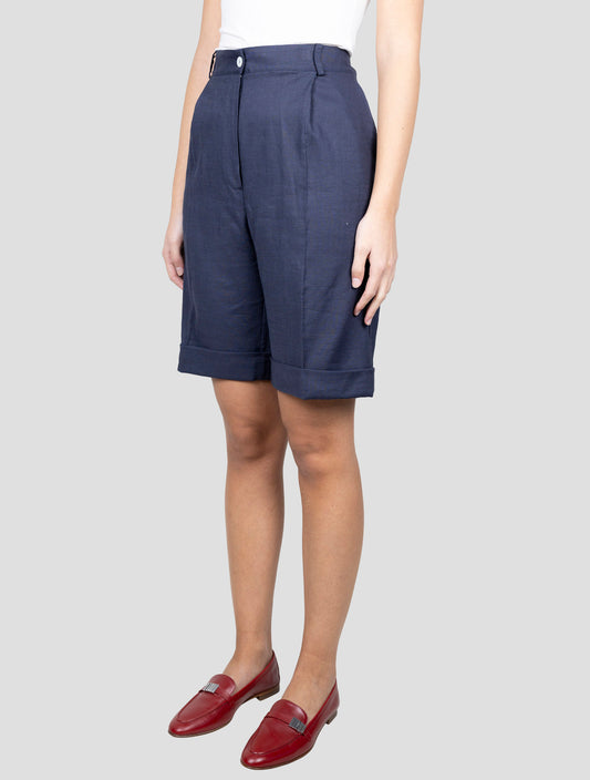 Kiton Blue Linen Viscose Short Pants - Italian Handmade Women's