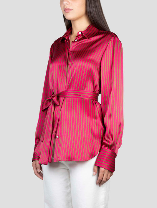 Kiton Fuchsia Brown Silk Shirt - Handmade Italian Striped