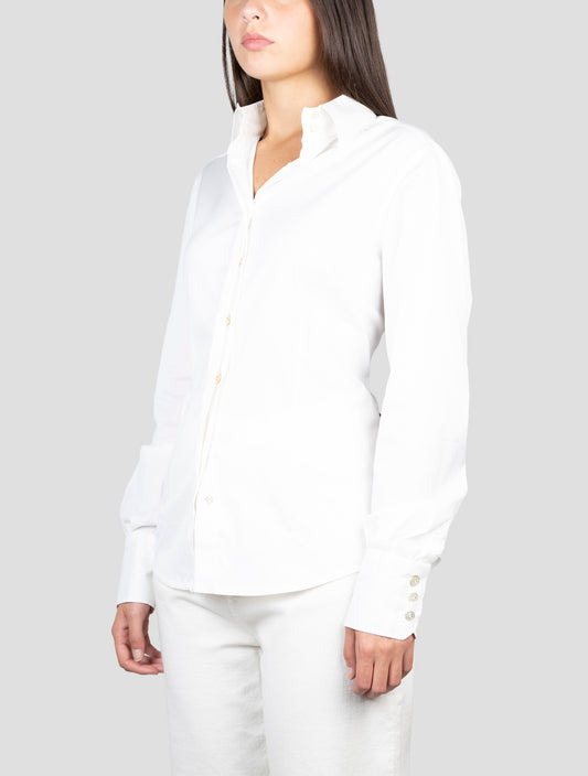 Kiton White Cotton Stretch Shirt Women's Italian Handmade Regular