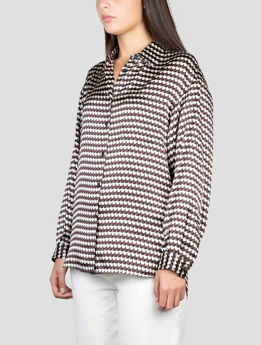 Kiton Women's Cotton Wool Geometric Shirt Brown Handmade Italian