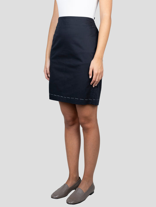Kiton Navy Cotton Skirt - Italian Handmade Women's Regular Fit