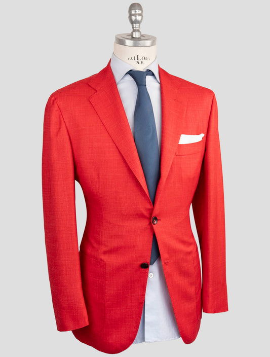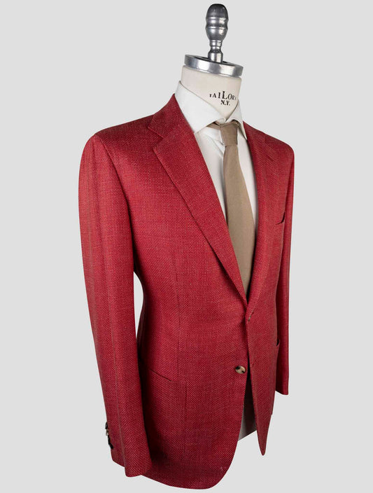 Kiton Handmade Red Silk Cashmere Linen Blazer - Italian 3-Button