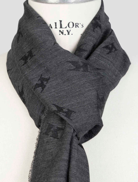 Kiton Dark Gray Cashmere Silk Scarf Handmade Italian Floral