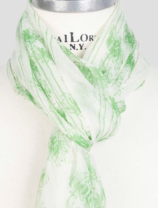 Kiton Handmade Cashmere Scarf White Green Italian Luxury Women
