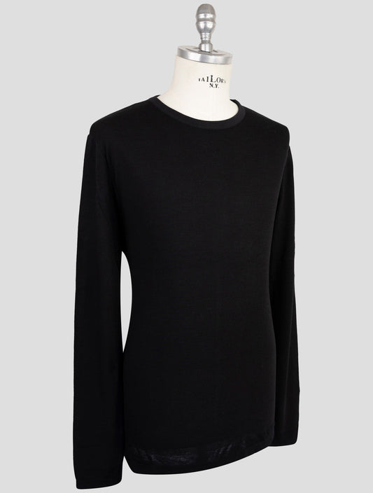 Kiton KNT Black Viscose Wool Long Sleeve T-Shirt - Handmade Italy